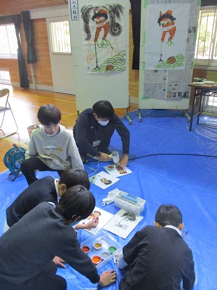 5年生が大津絵教室で大津絵を描きました。