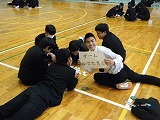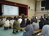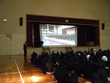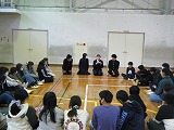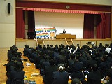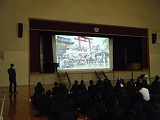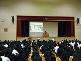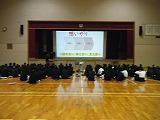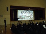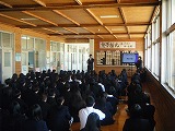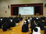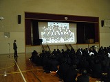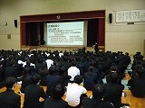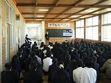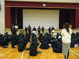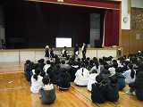 ■体育館での事前説明2校時には体育館にて、NEXCO西日本の担当者の方から