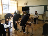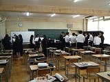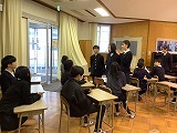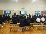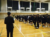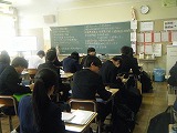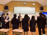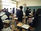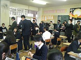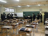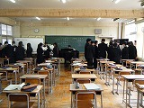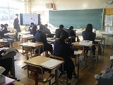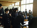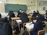 そして、最後は3年生全員でいつものように ■進路担当・学年主任からの指導その後、進路担当の先生、学年主任の先生から、受験に向けての心構えや当日の注意など、丁寧で温かい指導がありました。 さらに、受験校ごとに分かれて担当の先生から諸注意を受け、真剣に耳を傾ける3年生の姿がとても印象的でした。 ■1時間目の授業のようすまた、1月最終登校日の今日は、1時間目の授業も参観しました。
