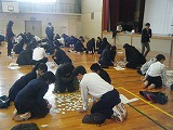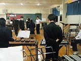 ■2年生 技術(機械分野)「速度伝達比」について考察している場面に出会いました。 ■体育の授業準備(2・3年生)グラウンドでは2年生、武道場では3年生が準備運動をしていました。 ■2年生 音楽