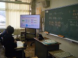 社会では、「水野忠邦の政治にはどんな特色があるか。」をテーマに学習。画面とワークシートを見比べながら、鎖国中の日本の様子を分かりやすく整理して学んでいました。