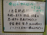 写真は、新生徒会が掲げた新しいスローガンです。校舎1階から2階へ上がる階段横の掲示板に掲示されています。南郷中らしさがあふれる、素晴らしいスローガンとなっていますので、来校の際はぜひご覧ください。 3学期も2週目が終了しました。来週は寒くなる予報が出ています。週末には部活動に励む生徒もいますが、体調に気をつけて、来週も元気に登校してほしいと思います。 |