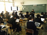1月28日水曜日は5時間授業・部活動休養日です本校では、平日1日・休日1日を部活動休養日として設定しています。今日は水曜日のため、5時間授業で放課後は部活動の休養日。生徒たちは学習に集中し、心身のリフレッシュにあてる時間となっています。 今日は短い時間でしたが、1~3年生すべての英語の授業を参観できましたので、その様子を紹介します。 1年生英語:タブレットを活用した学習