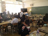 ◆6時間目 民生委員・児童委員連絡協議会を開催6時間目には、南郷・大石学区の民生委員・児童委員連絡協議会を行いました。 まず授業参観をしていただき、普段の生徒の学ぶ姿や学校の雰囲気を見ていただきました。