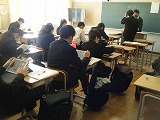 本日は県内私学入試の日でもあり、3年生はそれぞれ受験に向かいました。教員も駅や高校で生徒をしっかり支えました。雪の心配もなく、全員が無事に受験できてほっとしています。 学校では、2年生の授業を参観しました。 国語では、「最後の晩餐」の評論文と解説のまとめに取り組んでいました。