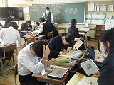冬休みの宿題で調べた「過去の偉人」について、タブレットを活用しながら英文を作成する姿が見られました。 2年生英語:比較級・最上級を使った表現づくり