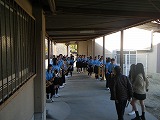 実力テストの様子は撮影を控えましたが、今日の写真は3年生の式歌練習の様子です。今日は「強弱」をポイントに練習していました。また、6・7組が他校との交流会に向けて練習している様子も掲載しています。 |