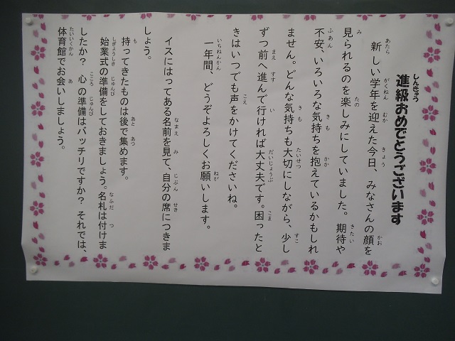 始業式は、ワクワクドキドキの瞬間です。校長先生からは、「あかるい子・あたたかい子・あきらめない子」のお話がありました。