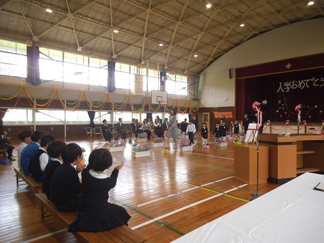 新1年生は、よい姿勢でお話を聞いて、しっかりお返事することができました。在校生の2~6年生は、歌のプレゼントで入学を歓迎しました。