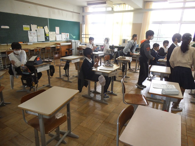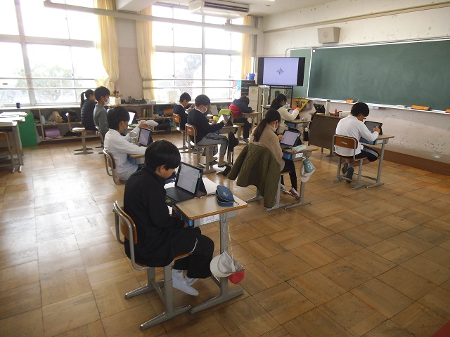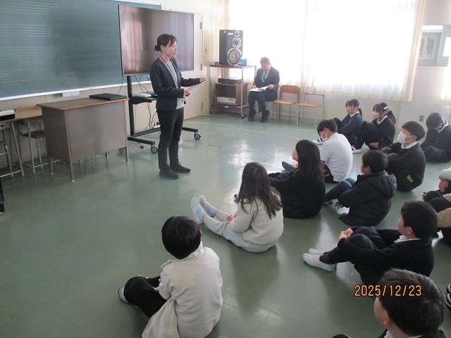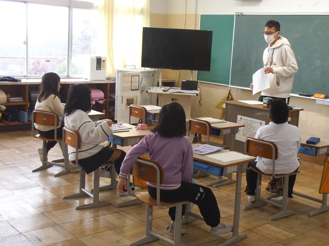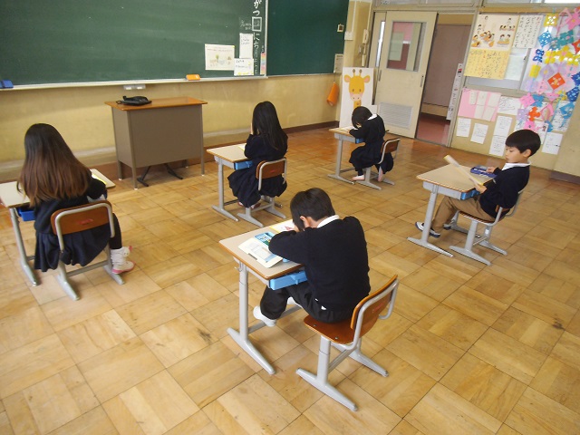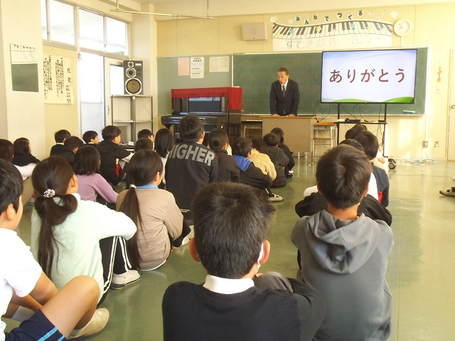 4年生も、冬休みの課題について話を聞いていました。5年生は、外国語のヒアリングをしていました。