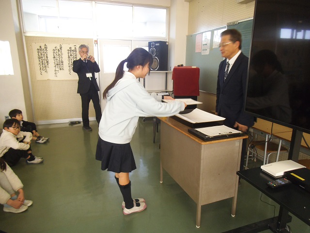 その後、各学年代表の作文発表があり、生徒指導担当からは、