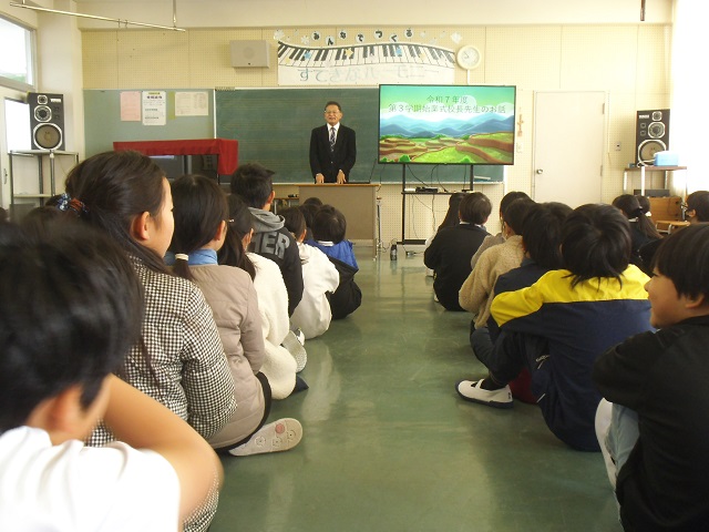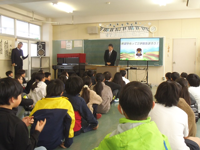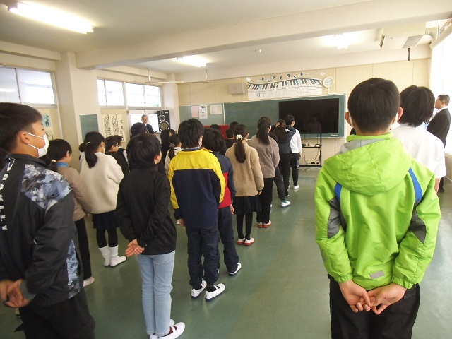 3年生は、冬休みの課題について話を聞いていました。