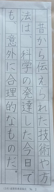 先週末(1/9~1/11)、草津市で県の青少年書展が開催されました。本校からは1年生1名と6年生2名の合わせて3名が硬筆の部で見事金賞を受賞しました。
