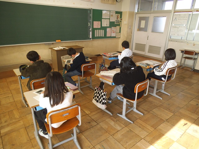 今日は春かと思うぐらい暖かい日でした。左(上) 3年生国語科の様子です。