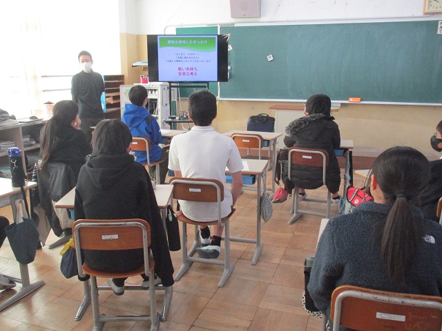 給食の残食問題について取り組んだことを発表しました。