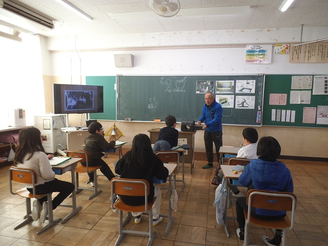 前半は教室で講師の先生の子どもの頃のお話を聞きました