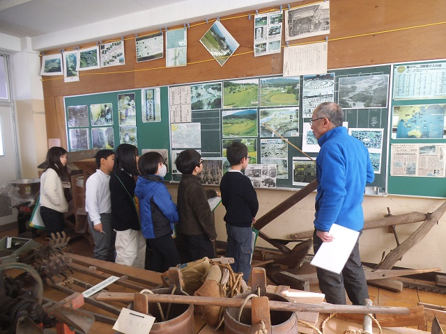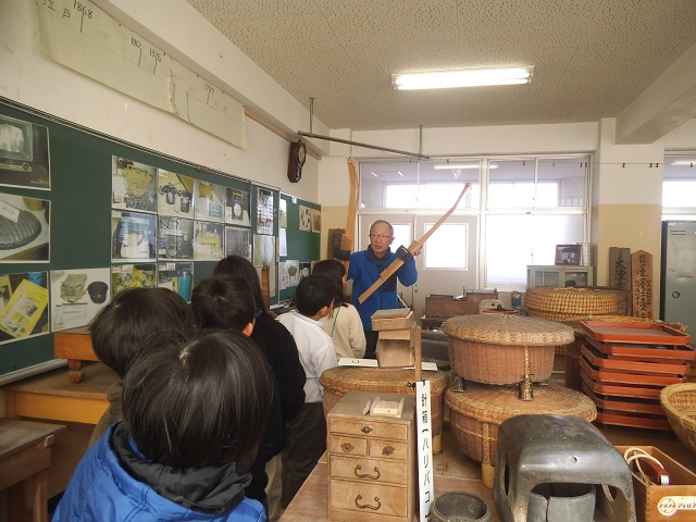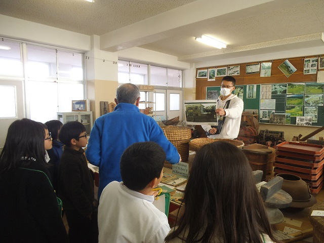 3年生の子どもたちが、社会科「市の様子と人々のくらしのうつりかわり」の学習の一環で、講師の方をお招きし、昔のくらしについてお話を聞きました。