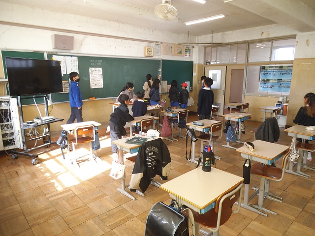 成果発表の後は、今年度から取り組みを始めている合同学習の様子を参観いただきました