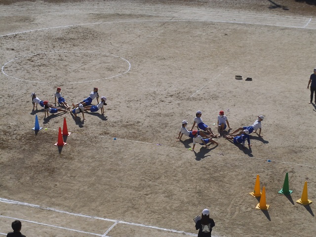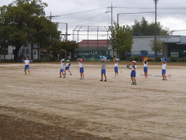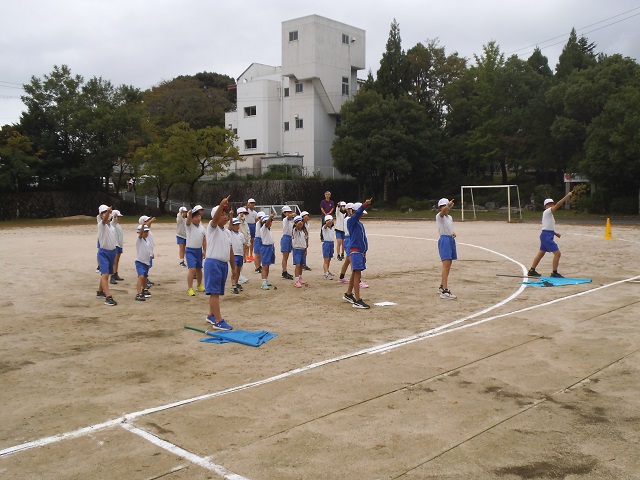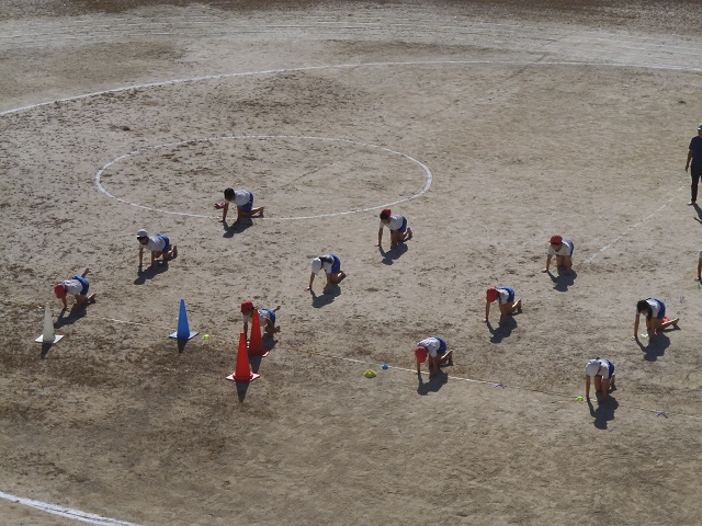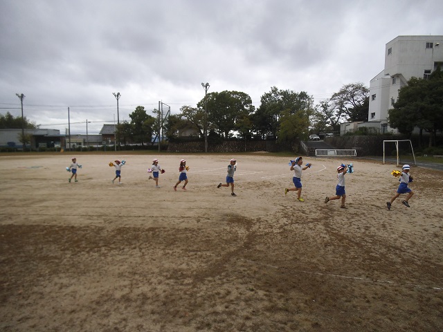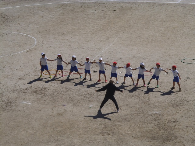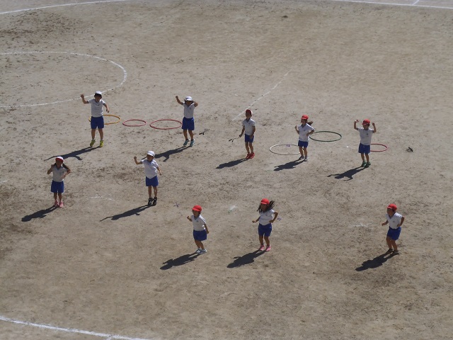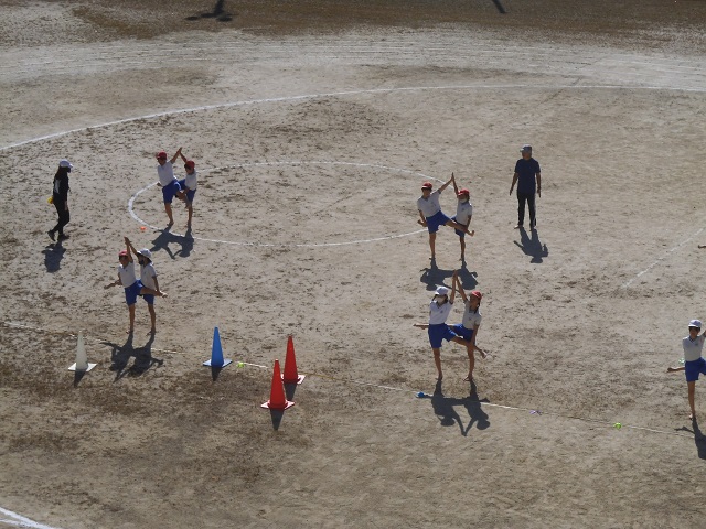今週末のスポーツデイに向けて、低学年の子どもたちが集団演技の通し練習を行っていました。前回よりも笑顔がパワーアップしているように感じました。