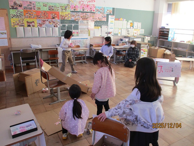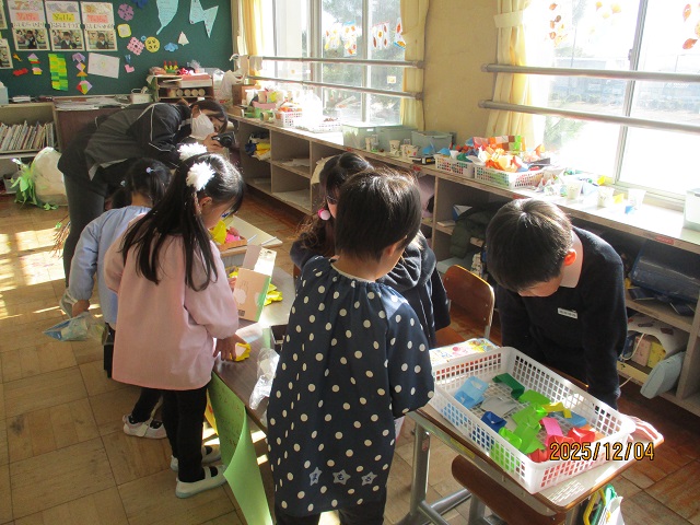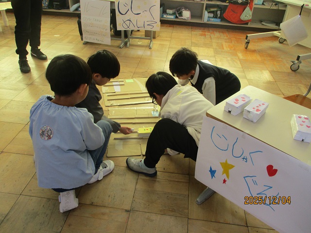 1,2年生の子どもたちが仰木の里幼稚園のお友だちを招待し、おもちゃランドを開催しました。