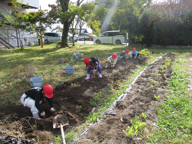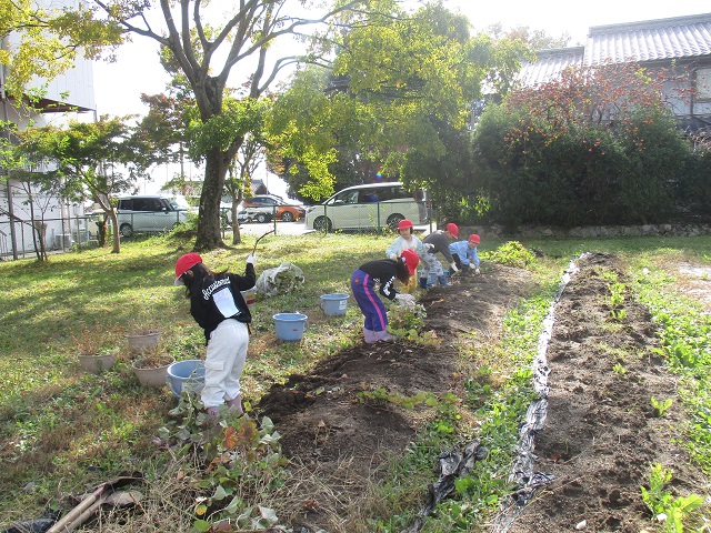 どの子も収穫したサツマイモを手にうれしそうでした。