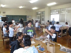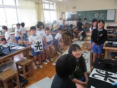 1枚目:6年生の家庭科の様子です。ナップザックがいよいよ完成です。地域のボランティアの方々にミシン縫いを手伝ってもらったこともあり、しっかり縫えていました。いつも助けていただき、ありがとうございます。2枚目:2年生の算数科の様子です。九九カードを使って、友だちと問題を出し合っています。何度も唱えて、覚えられるように頑張りましょう。