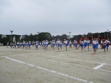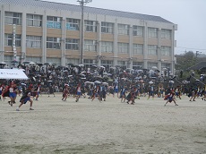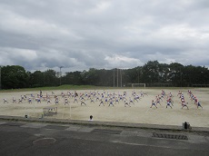 1枚目:昼休みの「おさるさんと歌おう」の様子です。今日は、1、2年生の人が集まっています。「にじ」や「パプリカ」を、一緒に楽しく歌いました。おさるさん、いつもありがとうございます。2枚目:運動会の外練習の様子です。3、4年生の演技の躍動感が増してきました。もっと静と動のめりはりがあれば、さらに際立つと思います。
