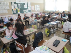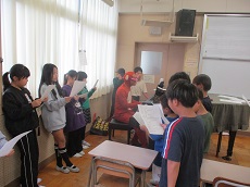 3枚目:3年生の音楽科の様子です。「レッツゴー ソーレー」のリコーダー演奏をしています。短い休符(8分休符)もうまく休みながら、のりのりでふいていました。もっと練習して、最後の難しい部分もクリアーできるようになりましょう。