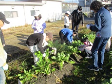 1枚目:大根とかぶの収穫です。地域の方に助けてもらいながら、げんき学級のみんなで抜きました。たくさん収穫しました。1,2年生も収穫しました。何にして食べようかなぁ。地域の皆様、いつもありがとうございます。2枚目:5年生の理科の様子です。物のとけ方の実験のふり返りをしています。タブレットで撮影した実験結果の写真などを確かめながら、しっかり復習していました。