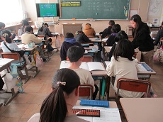 3枚目:4年生の算数科の様子です。そろばんをしています。5玉の操作が之までの計算とは違うので、その部分に戸惑いがあるようです。暗算のほうがスムーズだと感じながらも、頑張っていました。