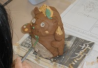 信楽焼のタヌキが持つさまざまな道具には、「八相縁起」とよばれる縁起の良い意味が込められているそうです。そのお話を聞いた子どもたちは、自分の願いを込めてタヌキに持ち物を工夫していました。プロゴルファーを夢見る子はタヌキの頭にトロフィーをのせたり、将来パティシエになりたい子はケーキやパンを持たせたり、音楽が好きな子はピアノを持たせたりと、どの作品も個性あふれる“オンリーワンのタヌキ” に仕上がりました。焼き上がりは3月。子どもたちは、出来上がりを心待ちにしています。