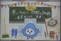 創立30周年を記念して、正門から見て左側の校舎壁面に、児童から募集した壁デザイン(横断幕)を掲示しました。
