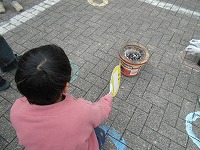 新聞紙に火が移ると、「ついた!ついた!」と歓声。