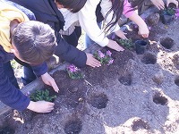 3/12(木)、6年生が卒業記念で、校舎と運動場の間の斜面に芝桜を移植しました。卒業記念として芝桜を移植するのは、4年目です。農園ボランティアさんから、芝桜の移植の仕方をお聞きした後、一人一鉢ずつ斜面に植えました。芝桜は春に桜のようなピンク色の花を咲かせます。「中学校へ入学する頃には咲いてたらうれしいな♪」と6年生達は話していました。