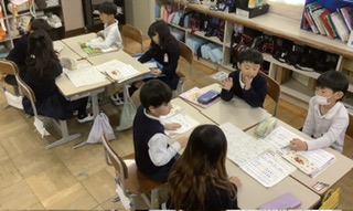 2年生のおもちゃランドに招待してもらいました。いろいろな遊びをいっぱい楽しみました。図工の時間は、グループでハサミでアートをしました。お互いの意見を聞き合うことを学びながら、楽しい作品が出来上がっていきました。