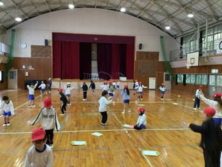 体育の学習では、なわとびを頑張っています。今週は新1年生を迎える会をしました。学校のことを知らせたり、一緒にぱっちんジャンプを作ったりして遊びました。緊張していましたが、やさしく声をかけて一緒に作ろうとするお兄さん、お姉さんの姿が見られました。
