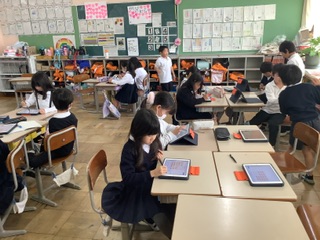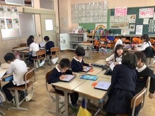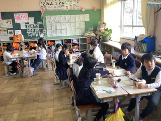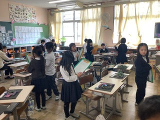 図工で新聞粘土の鑑賞会をしました。学活では、絵しりとりや漢字ビンゴをしました。