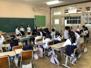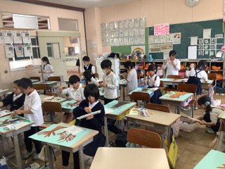 図工で新聞粘土の鑑賞会をしました。学活では、絵しりとりや漢字ビンゴをしました。