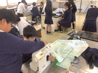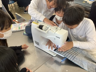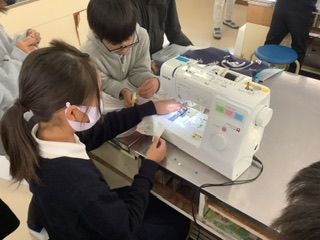 学級閉鎖もあり、全員が揃うことができなかった今週ですが、家庭科のエプロン作りをスタートしました。