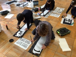 書き初めの練習では、