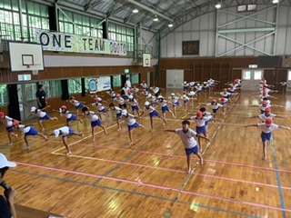 1回目の合同体育の時よりも締まった空気感の中で1時間、休憩を挟みながら取り組みました。見に来てくださった校長先生、教頭先生、そして教育委員会の先生からも、みんなが良い雰囲気の中で取り組んでいたことを褒めていただきました😌(でも、まだまだまだまだもっともっともっともっと、みんなはこれから高めていくのです✨️😌まだ今は、登り始めたところです🗻まだまだ、もっともっと、できます🤜🏻✧︎🤛🏻)