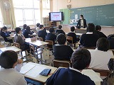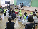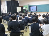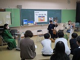 次に、6年生が日吉中学校の生徒会の方から話を聞きました。雄琴小を卒業した2人が丁寧に中学校生活について説明をしてくれました。