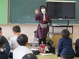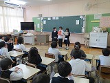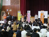 まず、TEAMおごとさん主催の芸術鑑賞会がありました。演者がお一人という劇でした。大変きれいな声で、子どもたちも物語に引き込まれていました。