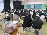 まずは、不審者対応の避難訓練を実施しました。不審者に気づかれないよう教室では静かに待機することができました。最後に雄琴交番の方からお話をいただきました。