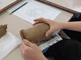 まずは、6年生がつちっこプログラムで信楽焼のたぬき作りに挑戦しました。