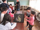 講師の方による手作りのおもちゃ広場。5日の第2回目(4・6年)に引き続き、今日の第3回目(2・3年)も大盛況でした。思い思いのおもちゃのところへ行き、そこに集まってきたメンバーで、協力して迷路の突破方法を考えたり、対戦ゲームをしたり、自分たちで遊び方を見つけていったり、和気藹々と楽しんでいました。夢中で遊んでいた子どもたちは、昼休み終わりのチャイムが鳴り、名残惜しそうに遊びを切り上げていました。年が明けたらもういちど、2月に来てくださることになっています。
