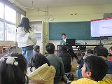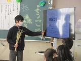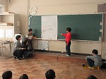 3年生は総合的な学習の時間「かがやき」で、これまでに「むかしのくらし」について学習してきました。今日は、自分たちが学んできたことを2年生に紹介する会を行いました。昔の遊びや音楽、食べ物、学校、ペット、洗濯、服、マンガなどについて、それぞれが調べたことを画像や音声、自分たちで作った新聞などを提示しながらわかりやすく説明し、2年生の子どもたちは興味をもって真剣に聞いていました。後半は3年生からのクイズがあり、2、3年生で楽しく学びを交流することができました。