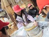 4年生の見送りをうけながら、琵琶湖博物館に向けてバスで出発しました。午前中の昔のくらし体験では、井戸のポンプや脱穀作業、石臼の体験をしました。昔のくらしと今のくらしの違いを感じながら、昔の方の知恵に驚く子どもたち。展示室では、琵琶湖の生い立ちや様子、琵琶湖周辺のくらしなどを学習した後、美味しいお弁当をいただきました。外でしたが日当たりがよく、気持ちよくランチタイムを過ごすことができました。午後からの展示巡りでは、昔のくらしについて調べたり、琵琶湖にすむ生き物たちを観察したりして、目と耳と心をしっかり使って学習することができました。