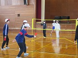 志賀中学校から体育科の先生が来てくださって、6年生に体育の授業をしていただきました。まずは、志賀中学校でウォーミングアップとして実施されている「ラジオ体操」からスタートです。先生の動きを見ながら真似をし、体をしっかりほぐしました。今日のメイン活動は「インディアカ」です。半数以上の子どもたちが経験していたこともあり、最初から上手に羽根を打ったり、打ち返したりすることができていました。チーム練習後は試合を行いました。ルールを守って、声をかけ合いながら試合を進める子どもたち。集合の動きや活動中の様子など、中学校の先生からたくさん褒めていただけたことが、子どもたちの自信につながりました。授業後には緊張がほぐれて、自分たちから中学校生活について質問しに行くなど、進学が楽しみになったようでした。