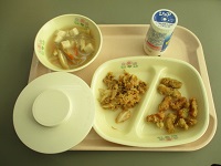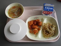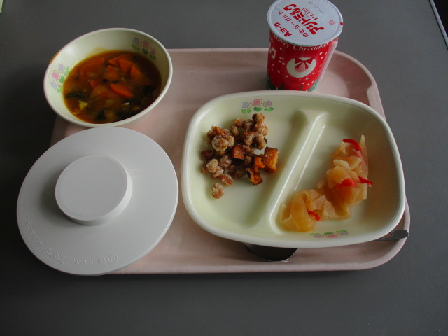 でした。れんこんと鶏肉のあんかけ汁は、新しいメニューでした。今日もおいしくいただきました。